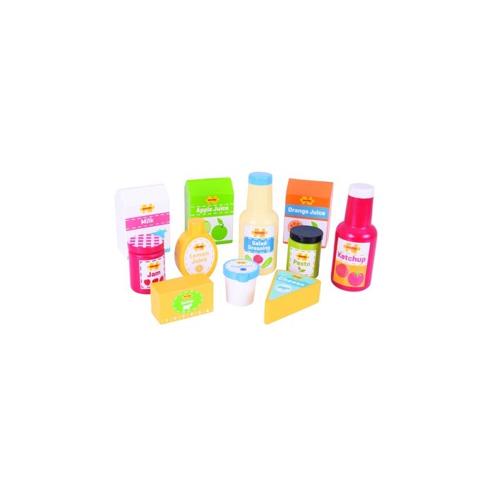 Encourage imaginative role play and teach little ones about nutrition with our chilled groceries set. Includes apple juice, jam, butter, cheese, pesto, ketchup, lemon juice and more! 55 x 120 x 55mm. Age 3 years+