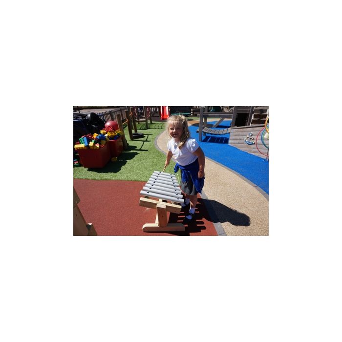 Take music outdoors with this fun chimes table. Includes a soft topped beater attached to the frame. The sturdy unit is light enough to be moved around your outside area. L78 x W50 x H52cm.