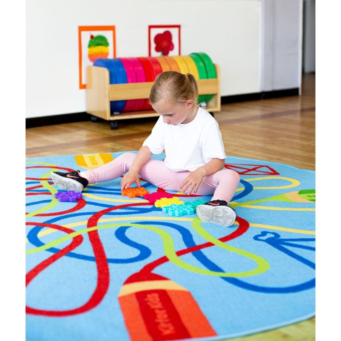 Versatile 2x2m circular carpet, perfect for small world play. Light and durable Tuf-Loop pile ideal for small play and making the carpet easy to roll and move. Avoid vacuuming over binding and edging to prolong the life of the carpet. Dia2000mm. Delivery of this product will be to kerbside only. You will need to arrange for the product to be moved to its final location.