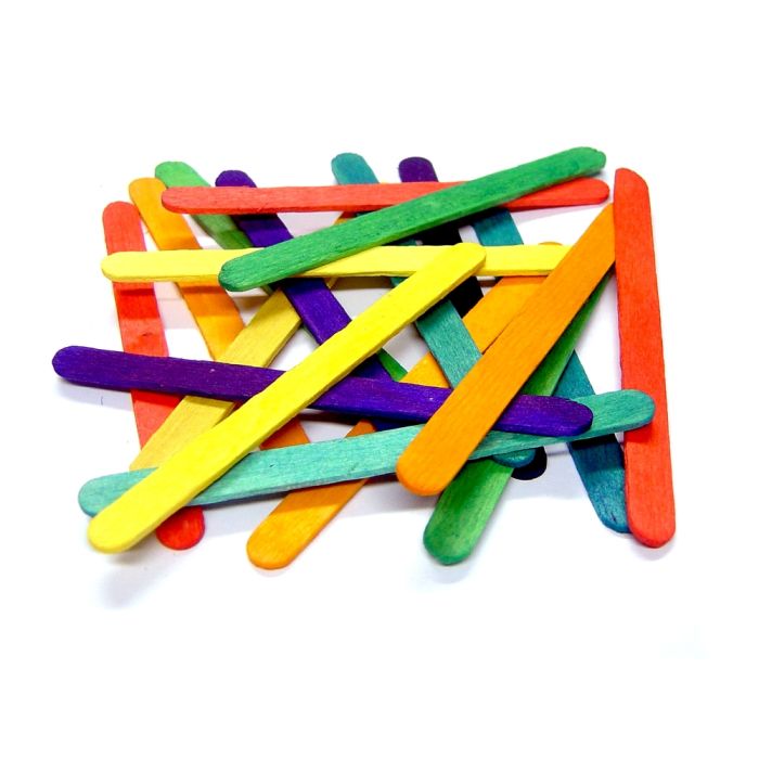 Pack of 1000 bright coloured lolly sticks. Made from wood in an assortment of colours, featuring red, orange, green, yellow and blue. A versatile craft from teaching colours to 3D crafts, these multicoloured lolly sticks are ideal for a variety of projects. Size: 9 x 112mm.