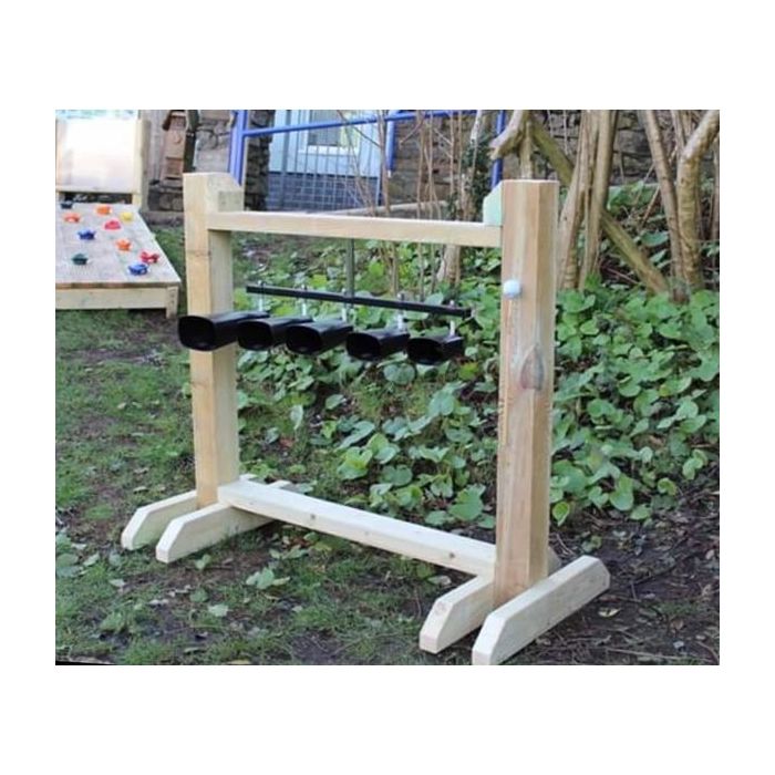 The Cowbell Frame is a captivating addition that complements our Bamboo Glockenspiel and Chime Square to create a harmonious and versatile percussion ensemble. This cowbell frame offers a melodic sound, further enhancing the auditory experience alongside the glockenspiel and chime square. The inclusion of the cowbell frame completes the set, providing a diverse and engaging range of tones and timbers for musical expression and creative exploration. Together, these musical instruments offer a comprehensive and immersive auditory experience, allowing individuals to enjoy a rich and expressive sonic environment. L1000 x D600 x H1000mm.Please note, this product is as a heavy item.
