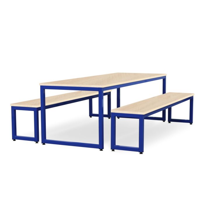 This modern Industrial Dining Bench & Table Set combines contemporary industrial design with exceptional durability, crafted to impress and built to last. Ideal for dining areas, breakout zones, educational settings, or collaborative workspaces, this set offers the perfect blend of modern aesthetics and practical reliability. 2 benches are included that match the table. Strong & Stylish: Manufactured from a robust 40 x 40mm metal frame for maximum strength and stability. Eco-Conscious Quality: Features a 25mm FSC-certified MFC top with a smooth, professional finish and protective 2mm ABS edging. This set is hand built to meet BS EN 16121:2013 Level 2 standards for strength, durability, and stability — the highest benchmark for commercial-grade furniture in the UK and EU. Supplied with a 5 year Manufacturers warranty. Table Dimensions: H760 x W2000 x D800mm. Bench Dimensions:H450 x W2000 x D400mm.