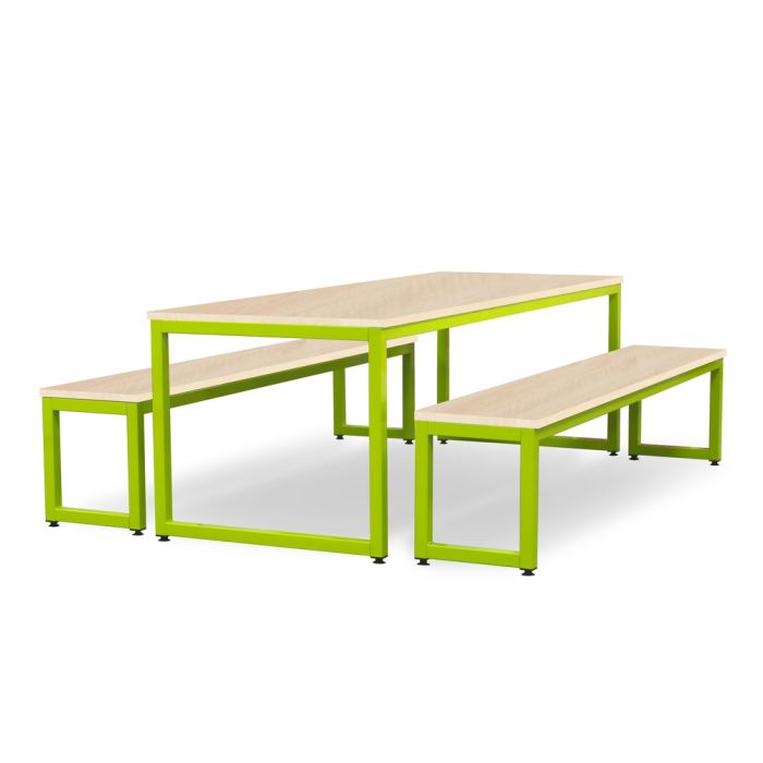 Dining Table & Bench Set Maple Top Lime Frame H760 x W1600 x D800mm