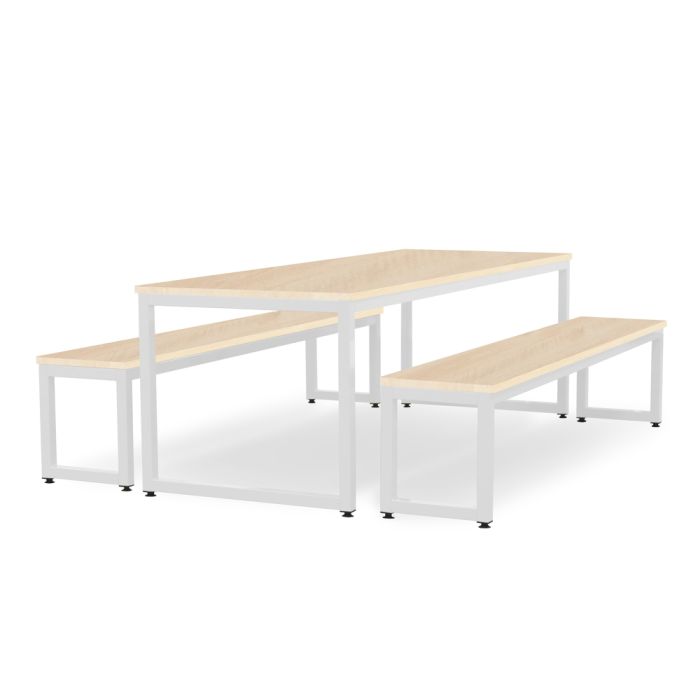 This modern Industrial Dining Bench & Table Set combines contemporary industrial design with exceptional durability, crafted to impress and built to last. Ideal for dining areas, breakout zones, educational settings, or collaborative workspaces, this set offers the perfect blend of modern aesthetics and practical reliability. 2 benches are included that match the table. Strong & Stylish: Manufactured from a robust 40 x 40mm metal frame for maximum strength and stability. Eco-Conscious Quality: Features a 25mm FSC-certified MFC top with a smooth, professional finish and protective 2mm ABS edging. This set is hand built to meet BS EN 16121:2013 Level 2 standards for strength, durability, and stability — the highest benchmark for commercial-grade furniture in the UK and EU. Supplied with a 5 year Manufacturers warranty. Table Dimensions: H760 x W2200 x D800mm. Bench Dimensions:H450 x W2000 x D400mm.