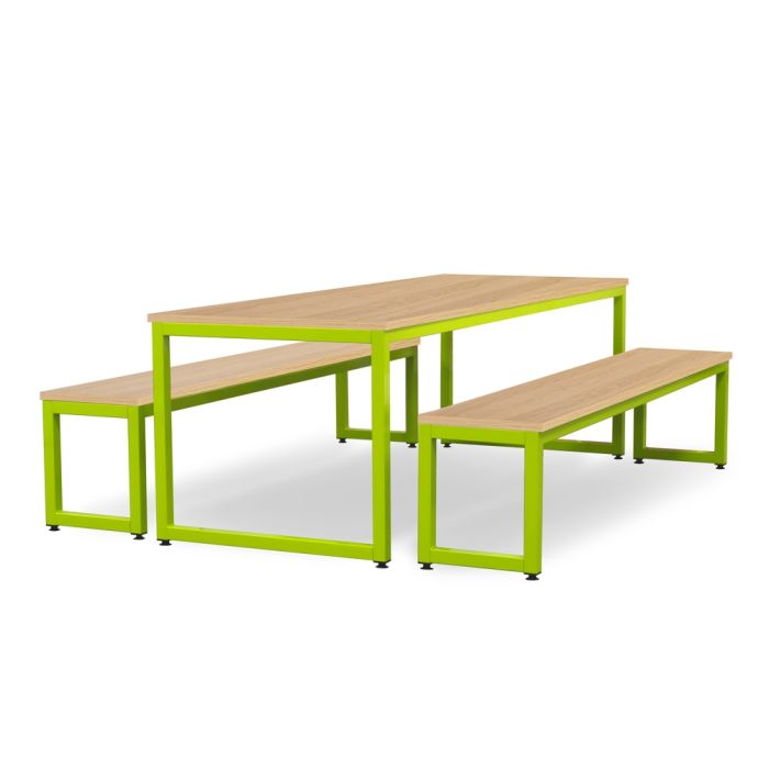 This modern Industrial Dining Bench & Table Set combines contemporary industrial design with exceptional durability, crafted to impress and built to last. Ideal for dining areas, breakout zones, educational settings, or collaborative workspaces, this set offers the perfect blend of modern aesthetics and practical reliability. 2 benches are included that match the table. Strong & Stylish: Manufactured from a robust 40 x 40mm metal frame for maximum strength and stability. Eco-Conscious Quality: Features a 25mm FSC-certified MFC top with a smooth, professional finish and protective 2mm ABS edging. This set is hand built to meet BS EN 16121:2013 Level 2 standards for strength, durability, and stability — the highest benchmark for commercial-grade furniture in the UK and EU. Supplied with a 5 year Manufacturers warranty. Table Dimensions: H760 x W2200 x D800mm. Bench Dimensions:H450 x W2000 x D400mm.