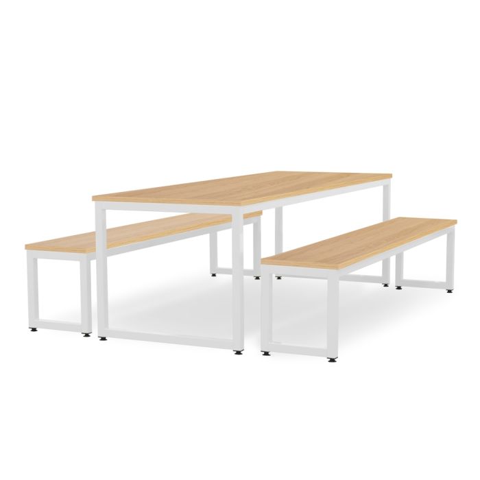 Dining Table & Bench Set Oak Top Light White Frame H760 x W1600 x D800mm