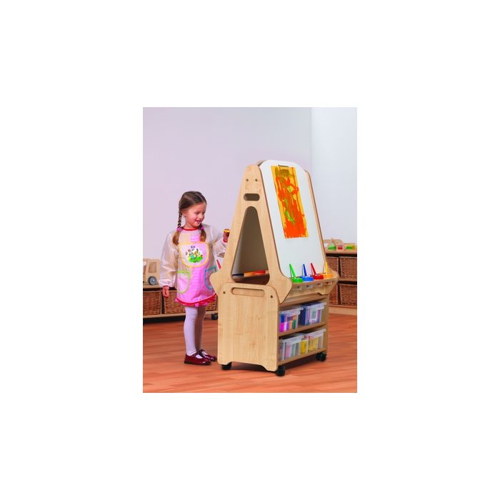 Create an environment which encourages expression and imagination with the help of the Millhouse Art Range. This easel and stand set, cleverly combines creativity with storage. Both units are manufactured in the UK from maple melamine and are durable, hard-wearing and easy to clean. Supplied fully assembled with a 5 year manufacturer's warranty. Includes 8 clear paint pots. Delivery of this product will be to kerbside only. You will need to arrange for the product to be moved to its final location. W680 x D600 x H1310mm.