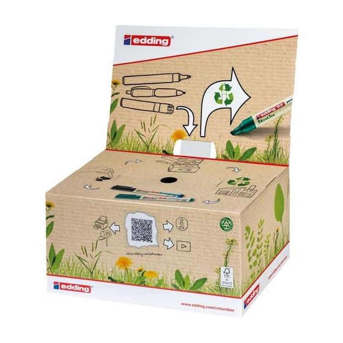 Eco-friendly and reliable, Ecoline e-28 black drywipe markers are perfect for whiteboard use in classrooms or offices. Made with at least 90% recycled plastic, these markers feature quick-drying, lightfast ink and a 1.5-3mm round nib for precise writing. Cap-off technology prevents drying out, and they are refillable for extended use. This pack of 40 includes a free returns box, ensuring easy recycling once the markers are finished. A sustainable, budget-conscious choice for professionals.