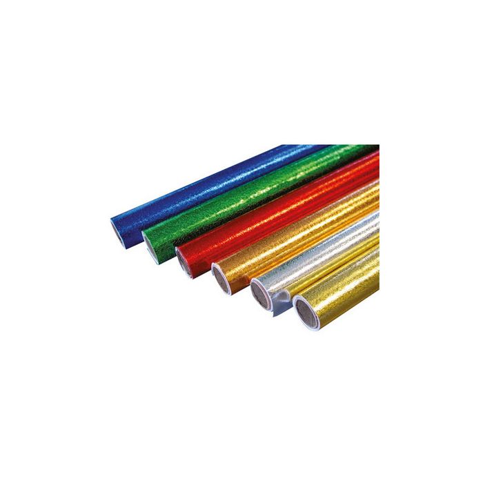 Our single sided embossed foil rolls are available in an assorted pack of 6 rolls, containing the following colours: