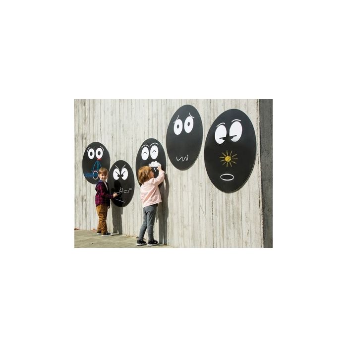 These chalkboards encourage mark marking, a development step towards learning to write, as well as promoting physical and cognitive development. Emotions include Angry, Happy, Shocked, Sleepy and Worried. Manufactured from 3mm expanded PVC a lightweight, rigid and durable material suitable for indoor or outdoor use. Supplied with fittings for fence (ties) or wall mounting. H1200 x W825 x W3 mm. Suitable for children aged 3+ years.