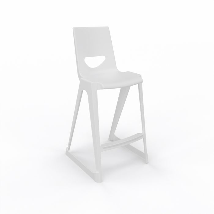 The EN One High Chair is manufactured in the UK from Reinforced Polypropylene which adds extra strength but also makes it a light option so it's easy to move. The 610mm seat height with a supporting seat back adds additional comfort. The footrest is positioned at 430mm from seat. Stackable up to 12 high within 2 meters. The one-piece construction ensures its easy to clean with no parts to maintain, perfect for an educational environment. It is 100% recyclable at end of life. The angled rear legs discourage user tilting. This is sold with a bag hook for easy storage, keeping bags off the floor. Seat height 610 x Seat Width 430 x Seat Depth 400mm. Overall Height 945 x Overall Width 495 x Overall Depth 490mm. Weight 6.3kg.