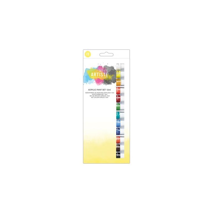 Suitable for a variety of techniques and surfaces including canvas, wood, paper, fabric, etc - Satin finish, water-based and nontoxic - Asst. colours - 12ml - Set 12