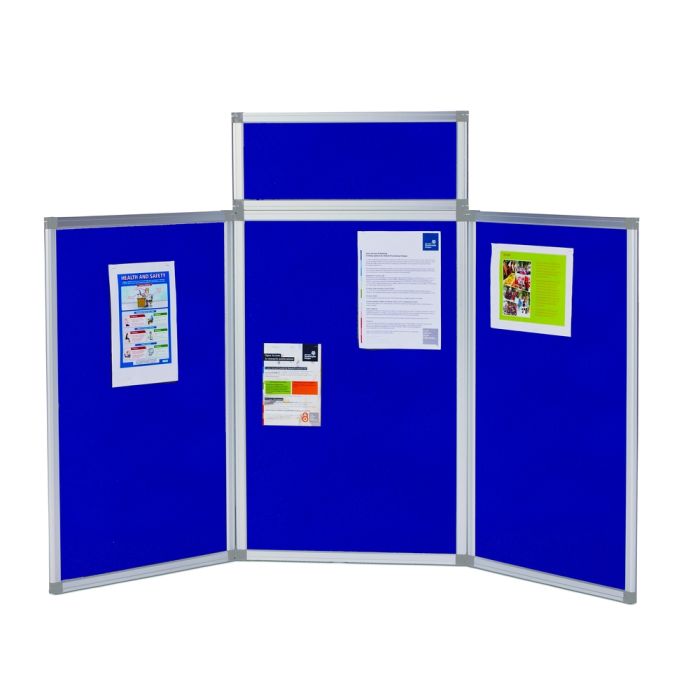 Fold-up display screen system with heavy duty aluminium framed panels, double-sided panels are H900xW600mm and hinged together in two sections (except desktop version). Easy to fold up, store, transport, and erect, supplied with a heavy duty zip-up nylon storage and carrier bag, comes with a 1 year product guarantee. Delivery of this product will be to kerbside only. You will need to arrange for the product to be moved to its final location.