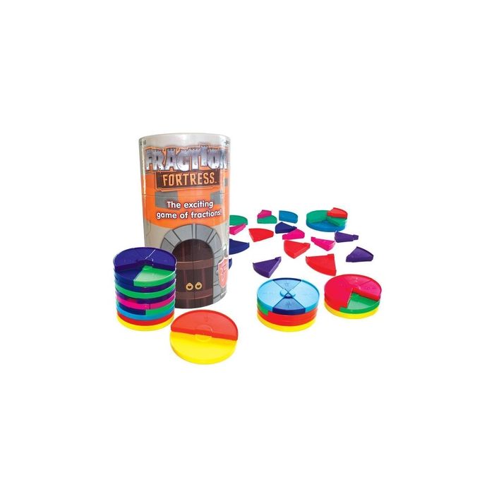 The exciting game of fractions! Stack your Fraction Fortress with as many fraction wholes as you can to win. Challenge your friends to see who can stack the highest fortress. Teaches visualizing fractions, comparing equivalent fractions and building fractions to make a whole. Contains 76 fraction fortress blocks, 1 spinner and a game guide. Aimed at ages 6 plus. Can also be used as a fractions classroom resource as contains a lots of various sized circle pieces.