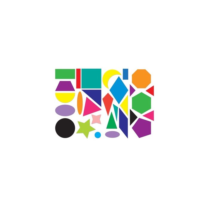 Combine geometry and art with this huge collection of colourful geometric shapes! Pack includes 800 pieces (29 simple geometric shapes) on double-colour cardstock, 2.5 – 10cm pieces, and 34 pattern cards.