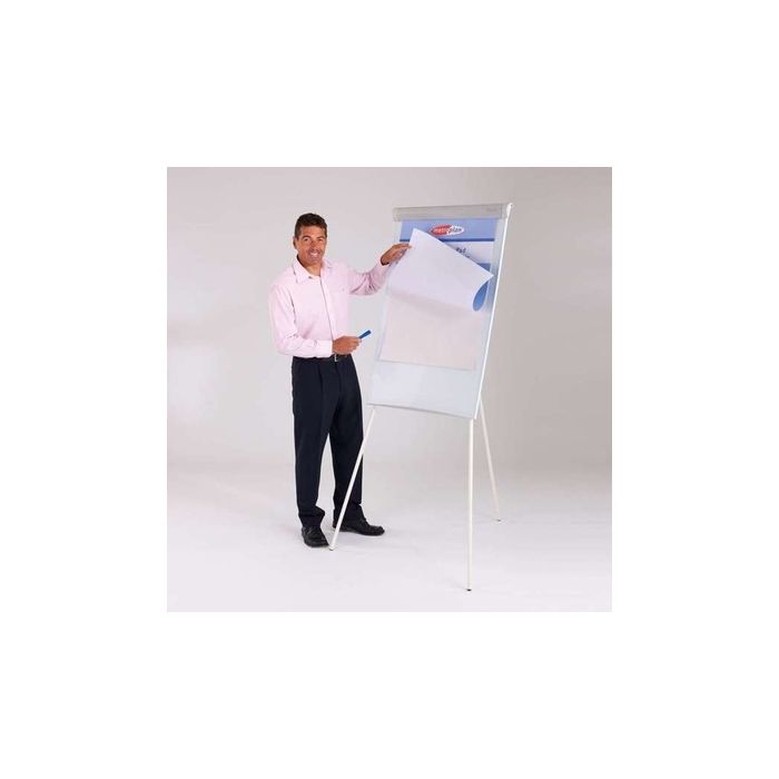 These flipchart easels have a drywipe surface that also accepts magnets and simple flip pad holder to accept all standard A1 pads. Tripod style easel gives great stability and height adjustability. Full width pen tray.