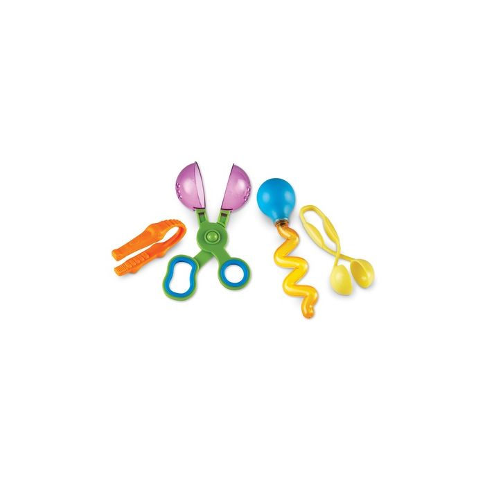 Designed for hands-on exploration, these tools are perfect in all kinds of settings, from the sandbox to the water table to the sensory bin! Squeezy Tweezers action is similar to that of a clothes peg and strengthens a child's pincer grasp; Twisty Droppers help develop open thumb web space and hand arch strength; Handy Scoopers is ideal for practising a scissor cutting action and Gator Grabber Tweezers guide little fingers into the pencil grip position to get children used to the feeling of writing. Set of 4. Age 3+.