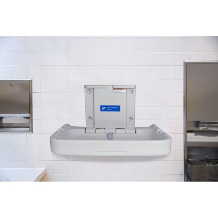 This is a certified and sturdy wall mounted fold-down baby changing station for use in