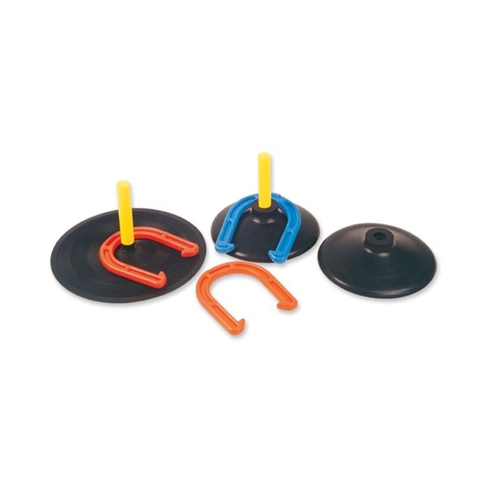 This horseshoe game desinged to improve hand eye coordination and throwing skills. Consists of two rubber bases, two posts and four horseshoes.