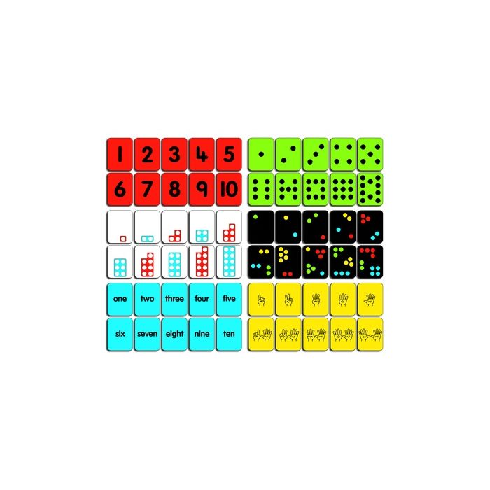 Support early numeracy development with the Images to Ten Card Set. Featuring varied representations of numbers to 10, these colour-coded cards are ideal for games, matching, ordering, and recognising numbers and quantities. This 60-card set helps preschool children make meaningful connections between different number visuals. An essential resource for early years numeracy activities. Each card measures 7.5 x 6.5cm.