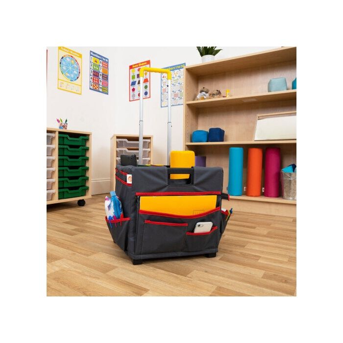 Designed with ergonomics and stationery in mind. With compartments and pockets, the opportunities for self-organisation and time-saving storage are limitless. Comes with a height adjustable retractable handle, that is stable and durable and makes it easy to move around, making sure that you are looking after your back. L350 x W320 x H320mm.