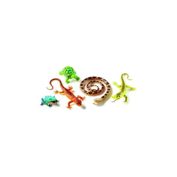 Made from durable wipeable plastic and perfect for small hands. Models are ideally sized for even of the littlest hands. Includes: gecko, tree frog, tortoise, iguana, snake (measuring 915mm) and a fun factual guide. Set of 5. Provides plenty of pretend play opportunities whilst helps young learners to develop an understanding of the world.