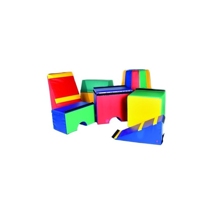 Ideal for aspiring gymnasts working within a more formal approach to skill and physical education goals. Soft support of the sports range helps with/ or inspire gymnasts to try all the climbing, sliding and jumping activities their imagination suggests. Contains 7 pieces: Large and small Bridges, Large and Small Wedges, Soft Box, Cuboid and a Barrel