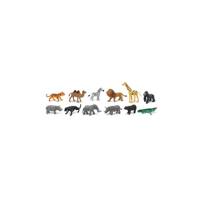 Walk on the wild side with this bumper pack of wild animals. Includes panther, elephant, gorilla, hippopotamus, zebra, brown bear, tiger, camel, crocodile, giraffe, lion and rhinoceros. Set of 48. Size: approx. 50-70mm. Age 3 years+