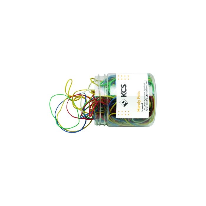 KCS Rubber Bands are multipurpose and come in assorted sizes and colours. Tub 75g.