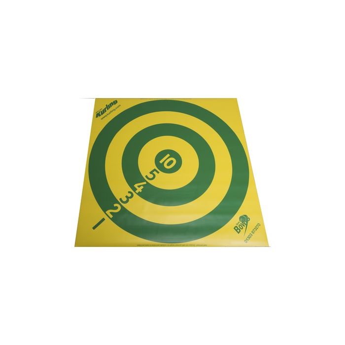 Numbered target for kurling, bowls and boccia. Scoring is by deliering all of the kurling stones, bowls or balls and then counting the points of each teams kurling stones, bowls or balls on the target.