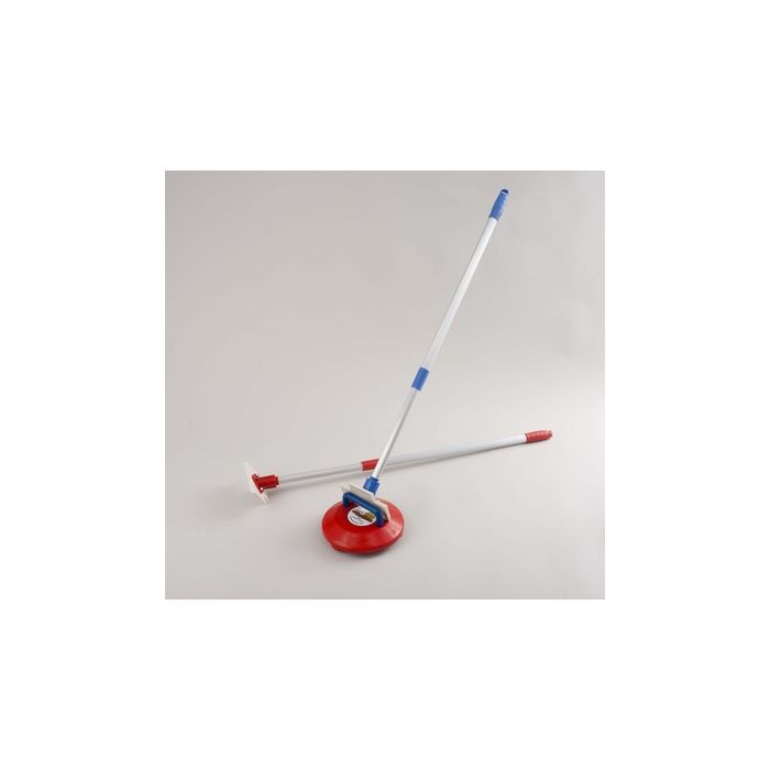 A pair of plastic pushers with telescopic handles. For use by pushing the kurling stone by the flat of the pushing blade resting on the kurling stone handle. Please note that the kurling stones are not included.