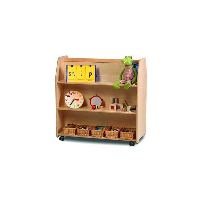 Designed to maximise storage within your early years setting. Ideal for dividing areas and creating well defined zones. Made from scratch-resistant maple melamine with solid beech features which are durable, hard-wearing and easy to clean. Holds up to 30 small baskets (sold separately). Lockable castors are anti-scratch and low-noise. Supplied fully assembled with a 10 year manufacturer's warranty. W1000 x D500 x H1000mm - Top shelf: H720mm. Delivery of this product will be to kerbside only. You will need to arrange for the product to be moved to its final location.