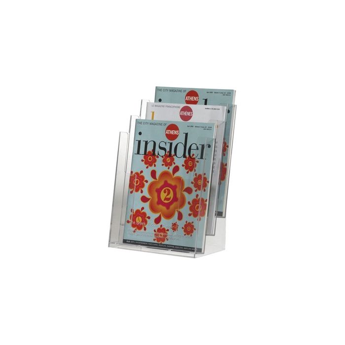Ideal for display in any educational setting's receptions, retail counters and at information points, as well as having a variety of other applications, the A4 3-Pocket Literature Holder is the perfect way to advertise offers and display leaflets. Made from clear plastic for easy viewing, this holder sits at a slanted position for optimal display. 3 compartments separate different types of literature or simply spread out into smaller groups. For A4 leaflets. Ideal for display on retail counters, reception desks and information points. Clear plastic for easy viewing. Slanted for optimal display. 3 compartments. W240 xD345 x H345mm.