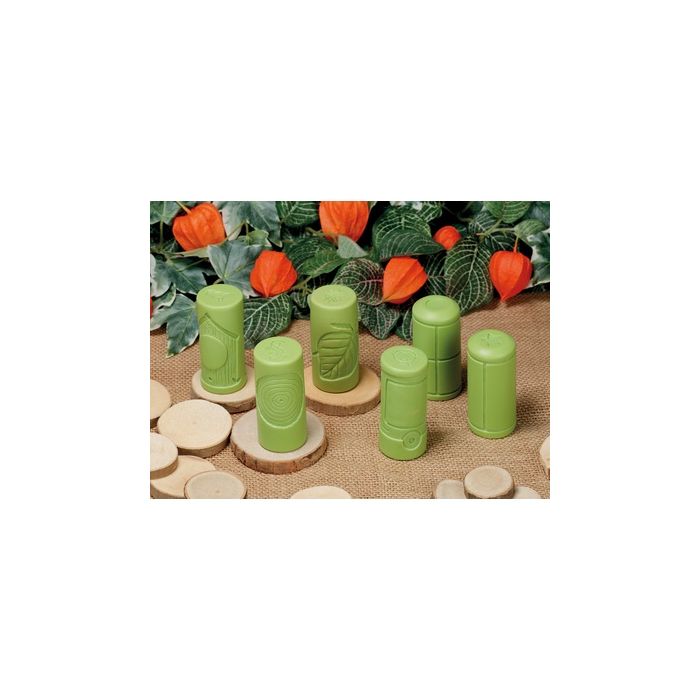 A set of six rollers to create tactile images in play dough, clay or sand, providing opportunities to explore and engage with number. Ideal to create 1–5 or 1–10 frames for simple counting. How many ladybugs are climbing the beanstalk? Have any flown away? Is the train full? How many seats are left? As they roll and stamp, children will be encouraged to ask questions and extend their maths vocabulary. The set includes six versatile designs: two traditional number grids; two vertical frames: a beanstalk, and stepping stones; and two horizontal frames: bird boxes and train carriages. Made from a durable stone mix that is easy to clean, each set includes six rollers measuring 72 x 34mm. Age 2+