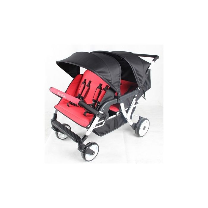 A lightweight compact 4-seat stroller for children aged 6 to 36 months (max weight 15kg per seat). Ideal for nurseries, pre-schools and child minders. With a protective sun canopy, spacious shopping basket. Lightweight and eassy to fold. 3 year warranty. Size folded: L1500 x W830 x H700mm. Each