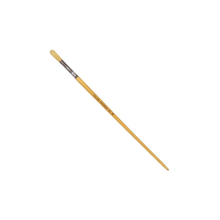Hog Bristle Brushes with a round tip and a long lacquered handle. The hair is firm, durable, and, suitable for use with most kinds of paints. The split end characteristics of the bristle enable large amounts of paint to be held on the brush. Size 12. Pack of 10.