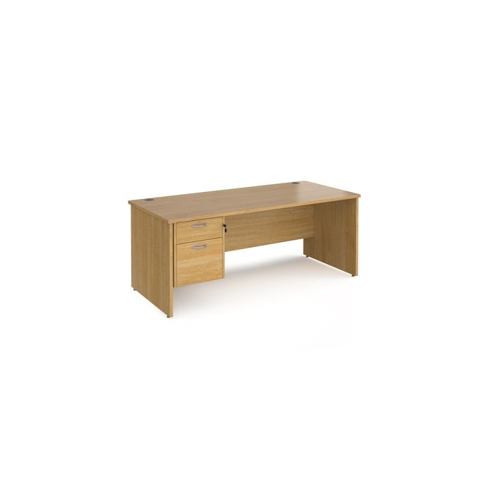 A staple for the modern office, the Maestro 25 desking range, with its minimal, modern styling and multiple colour options is there when you need it, but doesn’t demand constant attention. The traditional panel end leg design, modesty panel and 25mm melamine desktops create a fully coordinated look and offer a practical, strong presence in any office environment. Durable 25mm melamine worktops with 18mm back modesty panels. Panel end legs come complete with adjustable feet. Pedestal has one shallow drawer and one filing drawer which accepts A4 and foolscap files. Two drawer fixed pedestal which can be fitted to left or right hand side. H725 x D800mm.