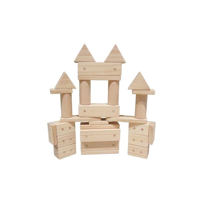 This natural wooden magnetic block set includes: 30 blocks in six shapes. Size: Large rectangle L100 x W30mm. Age 3+