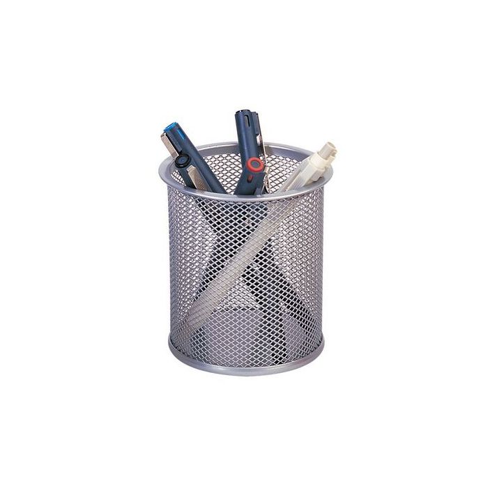 Store pens, pencils, highlighters, rulers and more in easy reach for quick access. The silver pen pot has a durable mesh construction and measures W86 x D86 x H105mm.