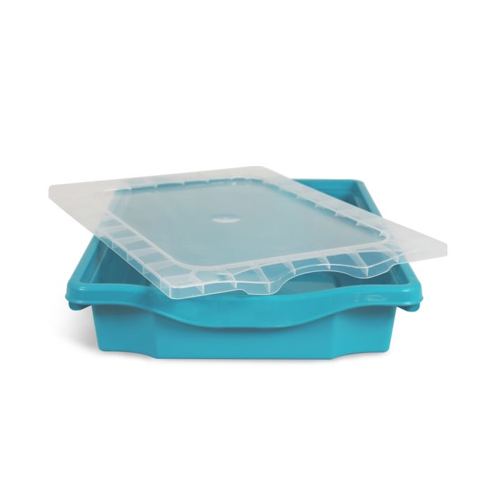 The Monarch Tray Lid™ fits perfectly into the top of all sizes of Monarch Trays™. The translucent material means that you can easily identify the contents of the trays, but also that the lid matches all tray colours. Being made from Polypropylene means that the lids are as tough as the trays and that they can handle anything a classroom environment needs. Trays with lids on can be stacked and locked into place. Having a lid on will make moving your trays around easier, without the risk of contents falling out. Dimension: 393.7 x 218.6 x 11mm. Supplied with 5 year manufacturer's guarantee. Fully recyclable and made in the UK.