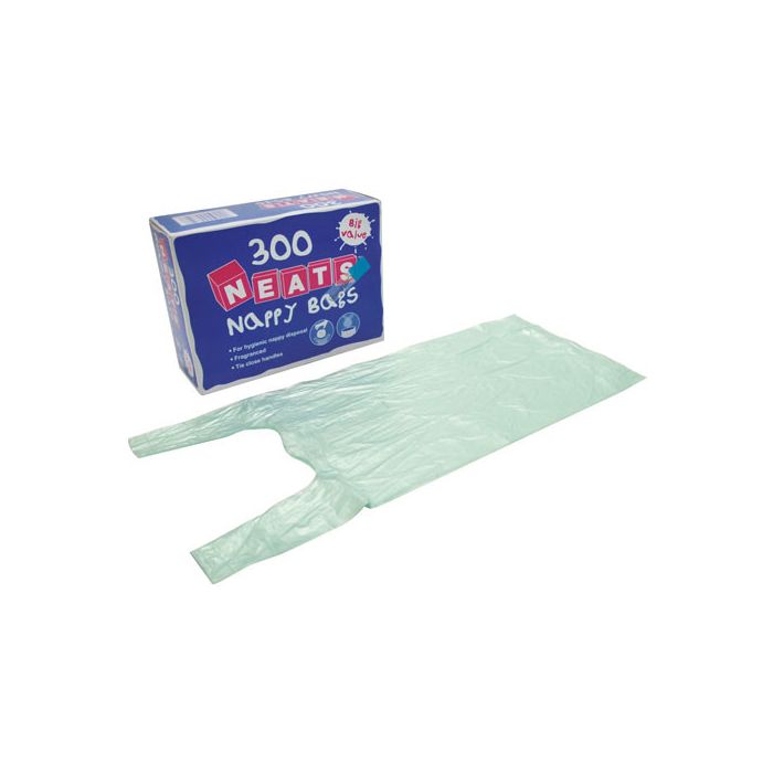 Pack of 300 disposable nappy sacks with simple and effective tie-handles for ease of use and a gentle scent that will conceal unwanted odours. Each sack measures approximately 230 x 260mm, excluding the handles, making them big enough to fit a nappy and any soiled wipes used whilst changing. The perforated dispensing slot on the outer box makes for easy accessibility and neat storage.