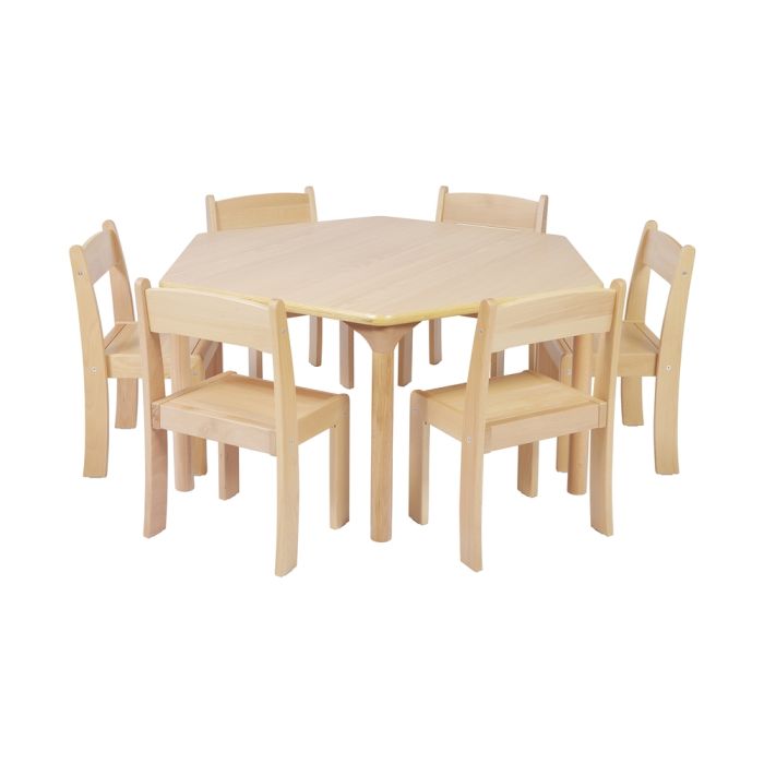 Tables can be cleaned very easily by wiping down the surface with disinfectant. Beech plywood melamine tops for superb durability and natural moisture resistance. Solid Beechwood legs. Tables are delivered flat packed – simple screw in leg assembly (no tools required). Corners and edges are rounded for safety and comfort. Sizes conform to EN1729 requirements (Euro sizes 1, 2 and 3). Table legs are made from the finest solid beechwood. Corners and edges are rounded for safety and comfort. Supplied flat packed for very quick, and simple, screw in leg assembly. Plywood is excellent at resisting sharp and heavy blows and is therefore much more scratch resistant. With the added benefit of being made from a renewable resource plywood is also an eco-friendly material, which along with its superb durability and natural moisture resistance, makes it the perfect choice for a hard-wearing tabletop that will resist the rigours of daily classroom use. Age 4-6 H530 x W1050 x D600mm (Each side).