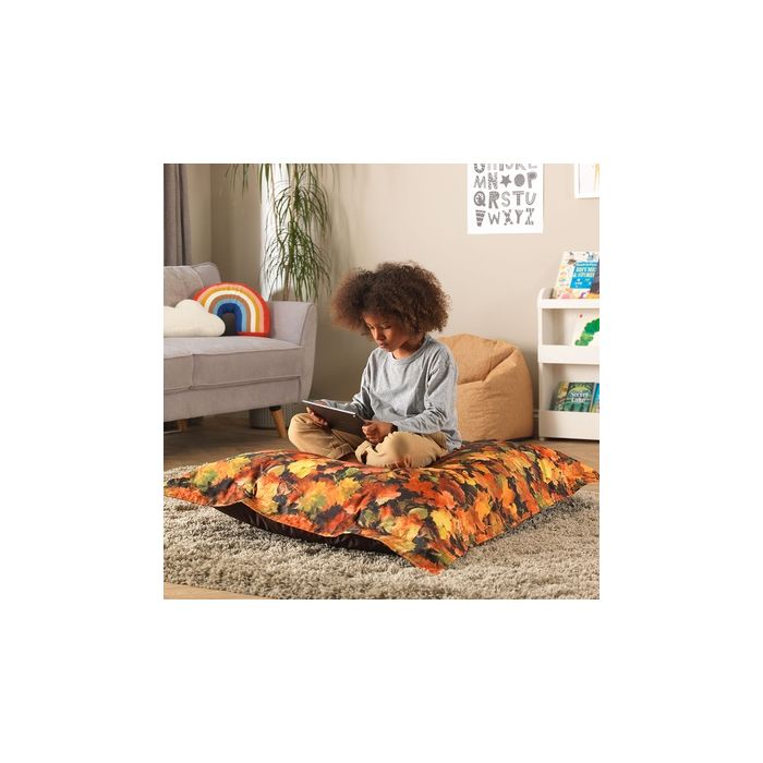 A vibrant addition to calming nature themed classrooms and can facilitate multiple seating positions. Children can use individually or in a group and can used either indoors or outdoors. Realistic high-definition printed design. Quick and easy to wipe-clean and can be positioned against a wall to offer back support. The double stitched seams offer extra strength. The zip features a concealed zip head cover pocket to help deter children accessing the zip. Complies to UK fire safety regulations BS5852 and has passed all relevant chemical tests. W100 x L125cm.
