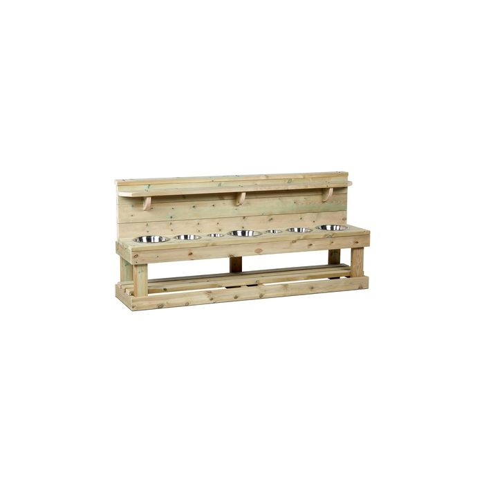 Create lots of magical potions and explore different textures with this study and freestanding unit. There are 7 stations with 4 x large bowls and 3 x small bowls, all of which can be easily removed. An upper and lower shelf provides lots of storage for pots, pans and other resources, plus there are handy storage slots for housing utensils. Create lots of magical potions and explore different textures with this study and freestanding unit. There are 7 stations with 4 x large bowls and 3 x small bowls, all of which can be easily removed. An upper and lower shelf provides lots of storage for pots, pans and other resources, plus there are handy storage slots for housing utensils. Supplied fully assembled with a 10 year manufacturer's warranty. W2000 x D500 x H900mm (490mm worktop height). Delivery of this product will be to kerbside only. You will need to arrange for the product to be moved to its final location.