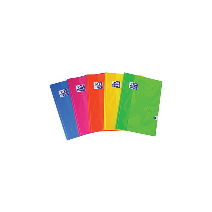 A4 Casebound Hard Cover Soft Feel Notebooks. 96 leaf/192 pages of 8mm ruled with margin paper. Quality smooth white 90gsm Optik paper allows you to write on both sides of the page. Casebound with laminated hard cover for durability and special varnish gives the notebooks a soft feel. 5 Assorted Neon Colour Covers - Blue, Pink, Orange, Yellow and Green. Pack 5.