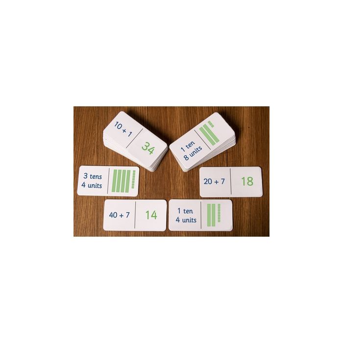 Build strong recall, flexibility and fluency with this simple set of dominoes. Each domino is double-sided and each number is shown in four ways: as digits, pictorial counters, as a partitioned sum and as tens and units. The game can be played in four different ways helping to create strong partitioning connections between the number as a digit and how it can be represented. With 24 pieces made from high quality durable card, 2 to 4 children can enjoy playing it over and over again. Top Tip: Add an extra dimension to traditional dominoes by adding an egg timer! How many pieces can you play in 2 minutes or 10 minutes? Trying to beat the clock will help children gain fluency and value speed of recall.