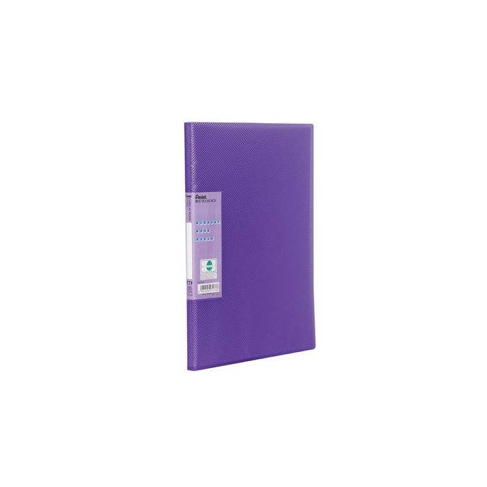 Display books with ribbed covers in vivid shades. 30 pockets. Title space on spine. Non-reflective, matt finish, low-static pockets. Made from at least 50% recycled material. Violet. A4.