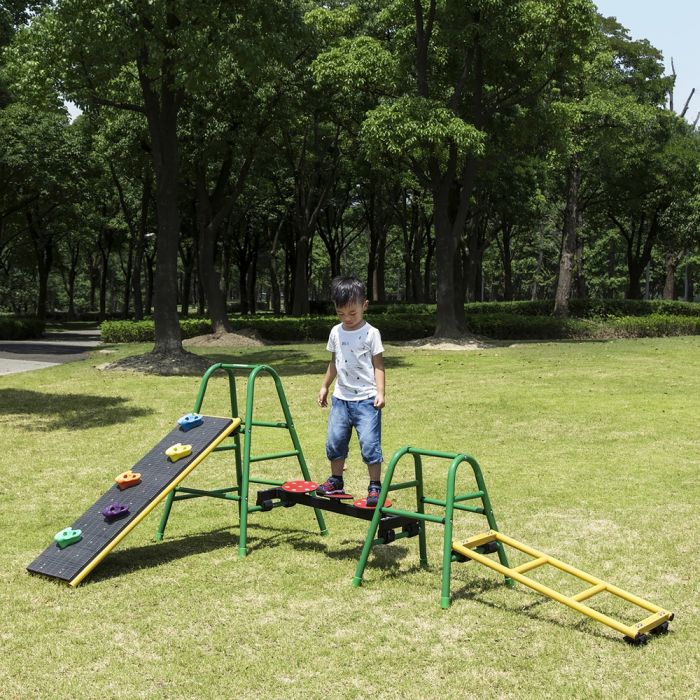 Suitable for use indoors and outdoors. Whether climbing, balancing, crawling, contemplating or sliding, children will have great fun whilst interacting with playmates and developing their physical co-ordination and social skills. All items are manufactured from a combination of galvanised steel, compact grade waterproof laminate and resilient powder coating. Items are tested to EN1176 (European standard for Playground Equipment). H900 x W2500 x D440 mm. Suitable for ages 3-11 years.