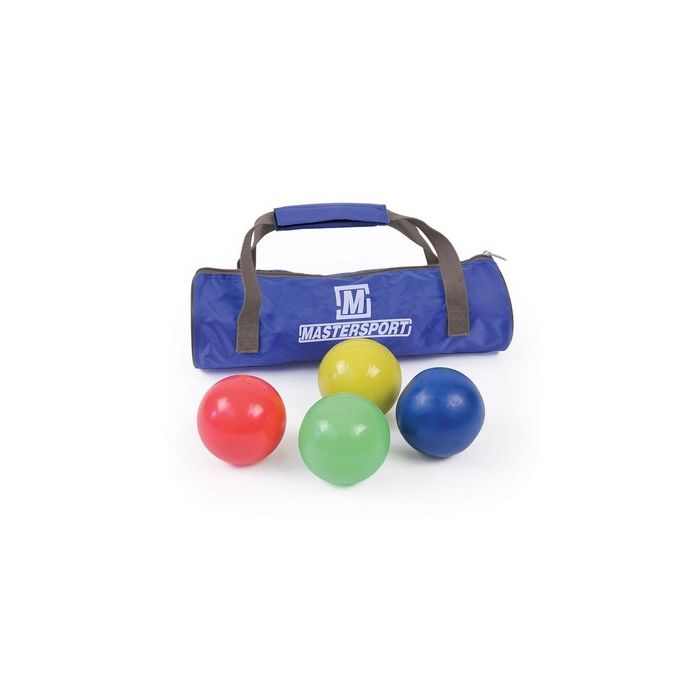 The Play-sport Shot is manufactured from soft colourful PVC and is filled with sand, supplied as a Bag of 4. 1 of each colour in a useful Play-sport Shot Bag. Diameter 90mm. Weight 600g.