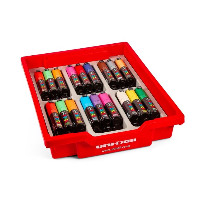 The Posca PC-7M Broad tip Paint Marker is appreciated by both amateurs and professionals for its broad bullet tip enabling both precise colouring and large-scale precision work. The water based, water soluble paint can be used to paint and draw on any surface, indoors or outdoors and to decorate windows and displays. It can be mixed, layered and blown to create a multitude of effects.